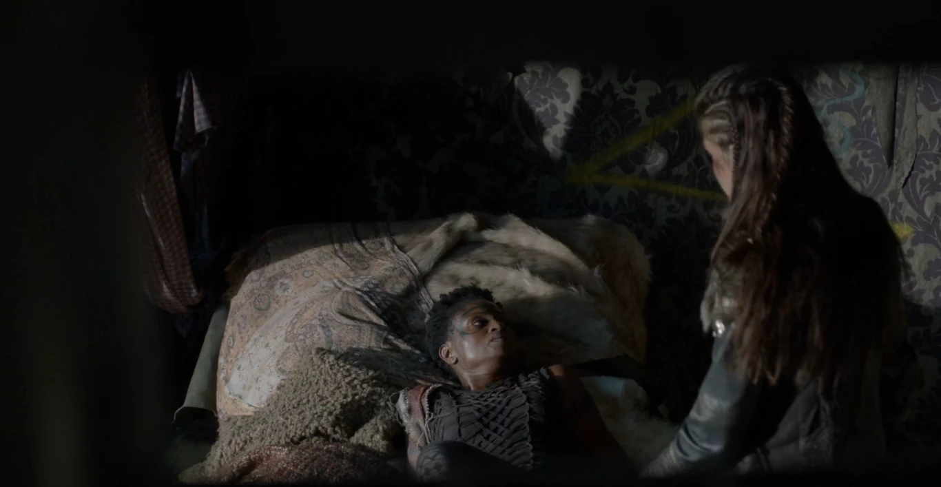 Octavia sieht Indra in Lexas Thronsaal, als sie von Semet gefesselt zu der Anhörung beim Commander gebracht wird. Indra steht, nicht wie sonst, neben Lexa, sonder ist in der Menschenmenge in eine Kapuze gehüllt.