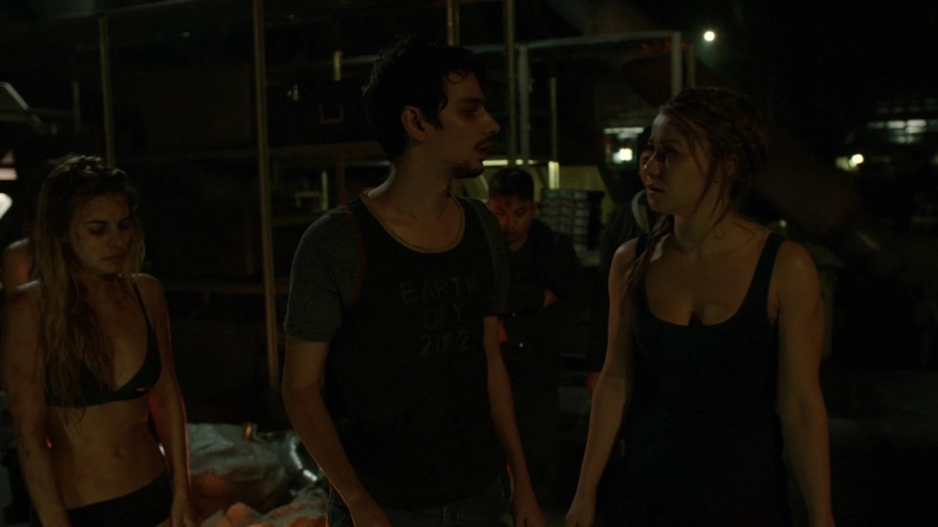 Als sie an einem Fluss ankommen, zieht sich Octavia bis auf die Unterwäsche aus und springt ins Wasser. Als Jasper beginnt, seine Hose auszuziehen um ebenfalls eine Runde schwimmen zu gehen, sieht er das sich etwas Octavia nähert, doch es ist zu spät. Octavia wird angegriffen und unter das Wasser gezerrt. Während Clarke Griffin, Finn Collins und Monty Steine in das Wasser werfen, um das Tier abzulenken, steigt Jasper in das Wasser und holt Octavia heraus. Als die Delinquenten später im Wald übernachten, schläft Octavia, mit ihrem Kopf auf Jaspers Brust.