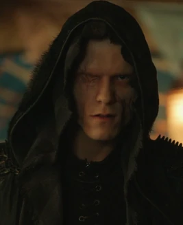 Er trägt eine dunkle Kapuze, um seine Narben im Gesicht zu verbergen. Er hat nur ein Auge auf der rechten Seite seines Gesichts. Sein linkes Auge ist von stark vernarbter Haut bedeckt. Er ist blasse und hat blonde Haare.