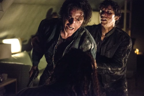 Après avoir investi et fait prisonnier tous les habitants du village et voyant que ceux-ci avaient des récupérés des vêtements de ses amis, mais ne le trouvant pas, il perd la raison et tue de nombreux Grounders alors que Clarke entendant les coups de feu le retrouve.