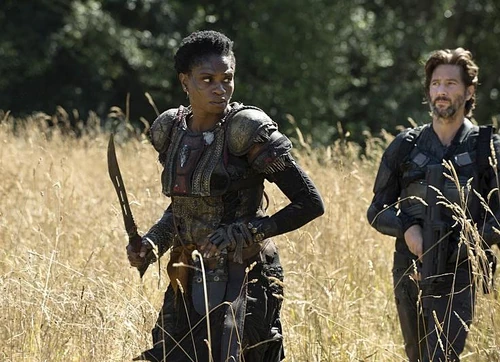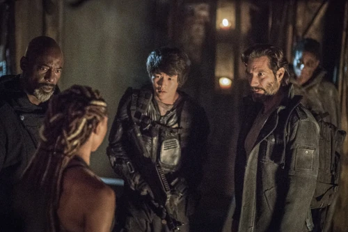 In Wanheda (Parte 2), Bellamy, Monty, Indra, e Kane sono intrappolati nel Settore 7 nel rover per tre ore in attesa che qualcosa accada. Bellamy sporge la testa fuori dal tetto e improvvisamente si trova un coltello alla gola. Agli altri viene ordinato di uscire dal rover mentre Bellamy viene tirato fuori attraverso il tetto. Indra, Kane, e Monty sono rapidamente presi in ostaggio da quelli che sembrano essere i guerrieri della nazione del ghiaccio che trovano il faro stazione fattoria di Monty. Monty cerca di combatterli e Bellamy chiama il suo nome per farlo smettere. Uno dei guerrieri ripete il nome di Monty e Monty riconoscono la voce della madre. La madre di Monty, Hannah, toglie la maschera dal viso e lei e Monty si abbracciano. Pike ordina al resto di stare giù e saluta Kane e Bellamy. Monty chiede del padre e Hannah gli dice che lui non ce l'ha fatta. Kane chiede a Pike quanti della stazione fattoria sono sopravvissuti e Pike dice 63 e il resto è accampato nelle montagne a nord. Egli li chiama terrestri "assassini" e tutti dicono "Urrà!". Bellamy li interrompe e dice loro che devono trovare Clarke. Pike riconosce il nome di Clarke essendo una sua ex studente della classe di competenze terrestri che ha insegnato sull'Arca.
