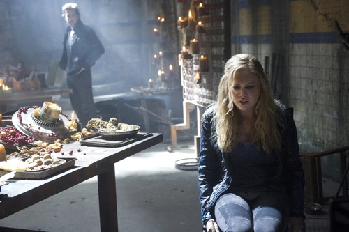 Più tardi, dopo la flagellazione, Kane si avvicina a Abby e le passa il cancellierato mentre si dirige fuori in missione per mediare la pace con i terrestri.
