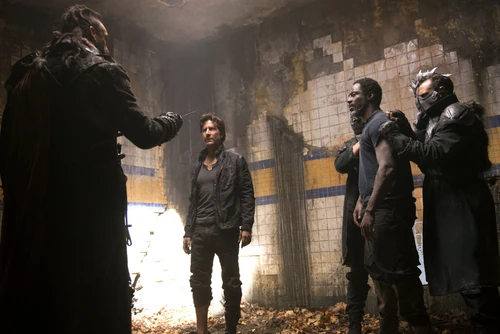 Bellamy sta conducendo Pike che ha imprigionato Kane e Octavia verso il campo della resistenza. Tuttavia, mentre si avvicinano alla linea di blocco, Bellamy tradisce Pike chiedendo ai terrestri del blocco di catturarlo. I terrestri uccidono le guardie di Pike e lo fanno prigioniero. Pike dice a Bellamy che li ha condannati tutti. Octavia si prepara a ucciderlo, ma Kane le dice di non farlo. Dice che dal momento che i terrestri non hanno ottenuto giustizia per Finn Collins, avranno bisogno di giustizia per Pike. I terrestri decidono di portare Pike a Polis e Kane si offre di andare con loro dicendo che sono il tredicesimo clan e che ha il marchio della Coalizione. I terrestri acconsentono e gli dicono di non rallentarli. Dice a Octavia e Monty di tornare ad Arkadia e di dire ad Abby che cercherà Clarke a Polis. Prima di andare, Kane chiede a Bellamy se ha consegnato Pike per sua sorella o perché sapeva che era la cosa giusta, ma Bellamy non risponde. Kane poi si allontana seguendo i terrestri.