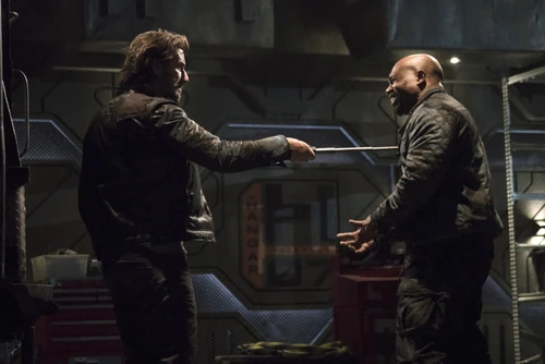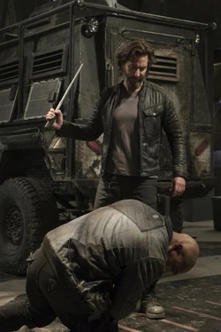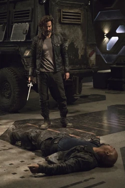 In Una scoperta agghiacciante, Kane mette Bellamy sotto interrogatorio, chiedendogli dei terrestri e del tipo di armi che utilizzano. Interrogato sul perché non riusciva a sconfiggere i terrestri quando i 100 avevano le pistole, Bellamy dice che avrebbero potuto batterli se avessero avuto più proiettili. Kane afferma che i suoi uomini hanno trovato più armi e munizioni nel bunker sotterraneo e Bellamy commenta che avrebbero dovuto cercato meglio. Il maggiore Byrne appare poi con Murphy e Kane lo fa rinchiudere con Bellamy.