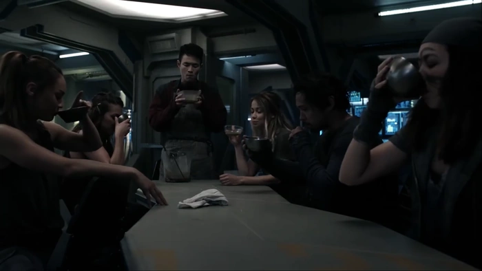 Il gruppo, che ora si chiama Spacekru, si tiene occupato. Il gruppo ha stabilito delle regole, la cui rottura ha comportato che i delinquenti stessero facendo le faccende. Si allenano in combattimento, imparano Trigedasleng e lavorano sull'Anello. Emori diventa apprendista di Raven, imparando come utilizzare e ingegnerizzare varie tecnologie. Assiste Raven sulle passeggiate spaziali e impara a pilotare la Vesta IV. Murphy è frustrato dal momento che non hanno un modo per tornare a terra.