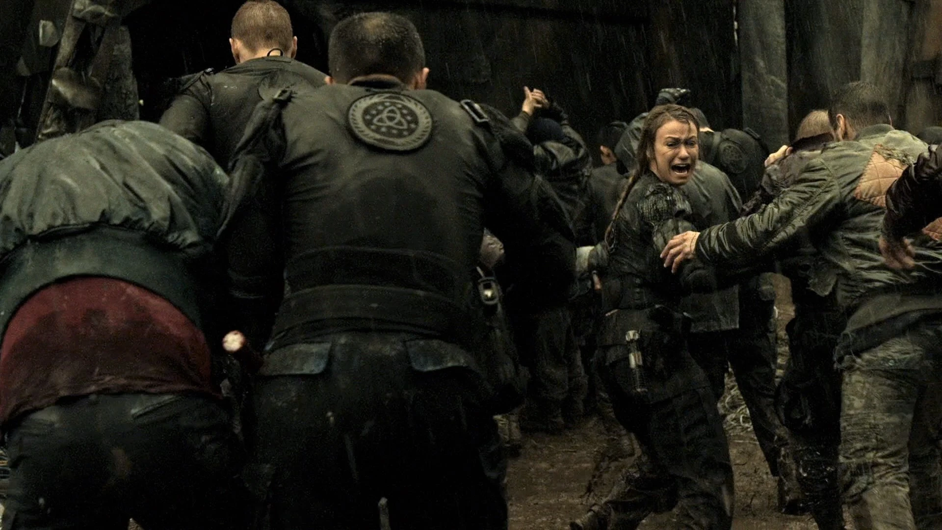 Джон разговаривает с пленником, но затем приходит Эмори и начинает бить его по лицу. Кларк просит её остановиться, иначе он умрет. Вместо этого она предлагает использовать его для тестирования ночной крови.