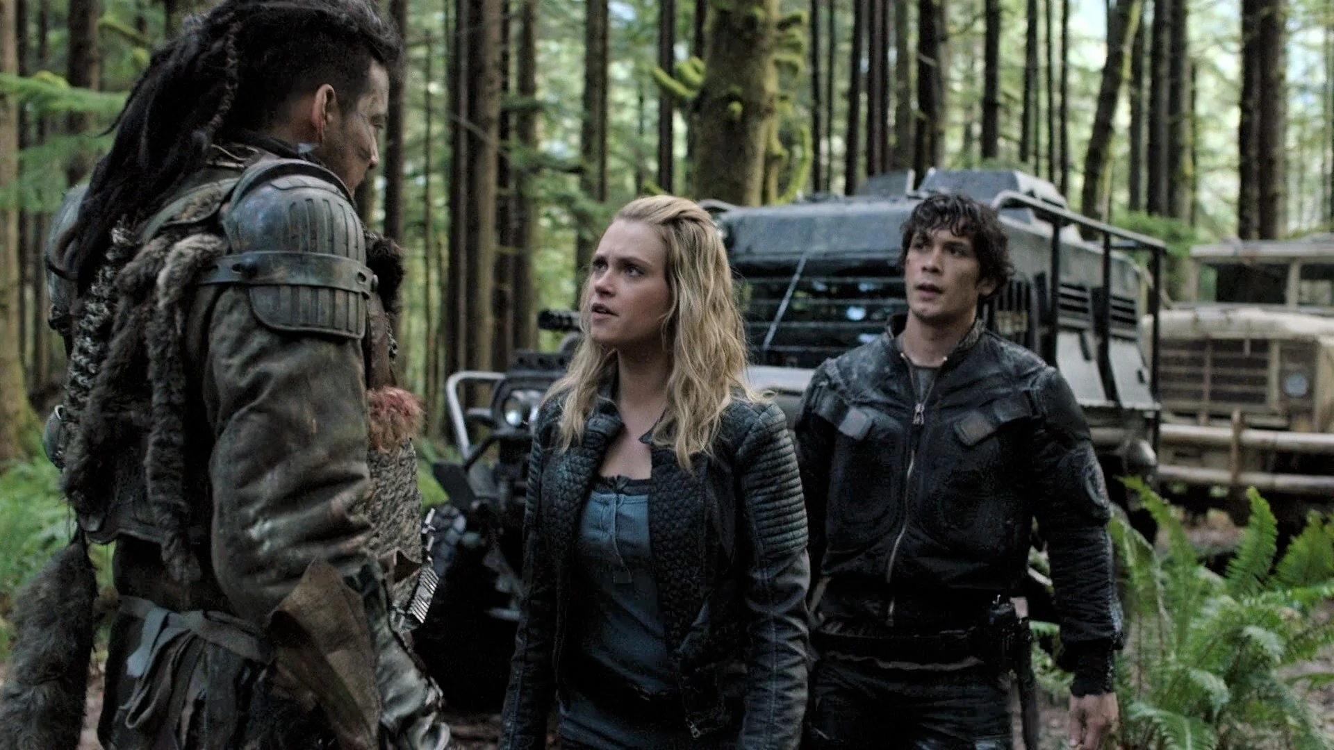 Беллами и Роан пытаются догнать воров, пока те не доедут с топливом в Полис, иначе Трикру сделают из топлива бомбы, и тогда всем придет конец. Они приближаются к телу, лежащему на дороге, и Роан понимает, что это ловушка, так как Трикру сжигают мертвых, а не оставляют на дороге. Вдруг, воины Трикру прыгают на их ровер. Один из них пытается ударить Роана ножом, но терпит неудачу. Роан говорит, что все действуют во благо своего народа и понимает, что грузовик украл его человек, а не Трикру. Беллами начинает отъезжать и им снова удается оторваться.