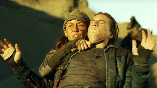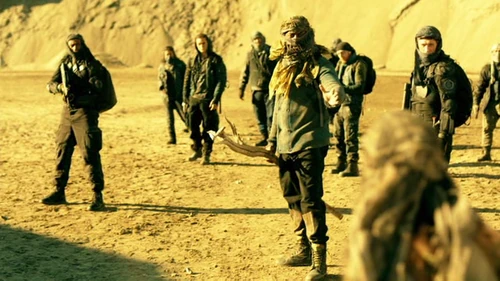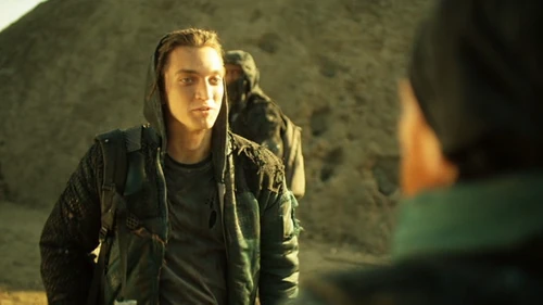 In the Dead Zone, Murphy is helping Emori with her cart when a rider appears, aiming a rocket launcher at them. Emori takes Murphy hostage and tells them to put all their supplies on the cart or they will all die. Jaha tries to convince them to work together but Emori tells them to back away from the cart and get on their knees. She then whispers something into Murphy's ear before she knocks him out.