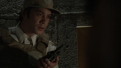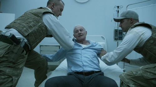 In the Mount Weather Command Center, Emerson asks Cage for his authorization code to arm the missile.