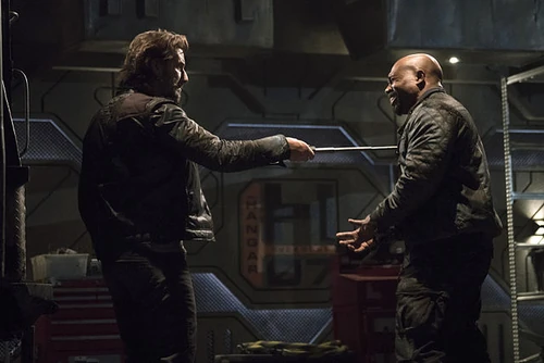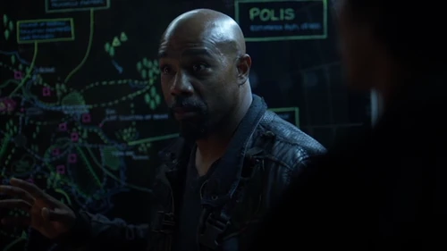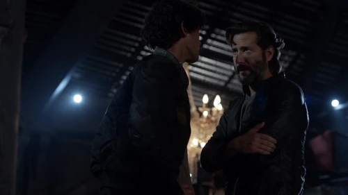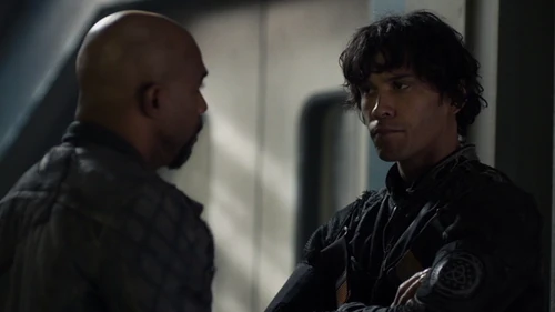 Pike and his team are going trough their ammunition storage when Kane enters, wanting to talk to Pike. The two step outside. Kane tries to convince Pike to turn himself in, to the Grounders. Pike refuses, not wanting to end up like Finn. Instead, he wants to keep fighting the Grounders until they learn their lesson. Kane calls him a dictator, leaving Pike unimpressed.