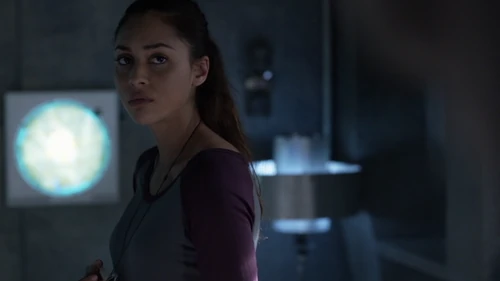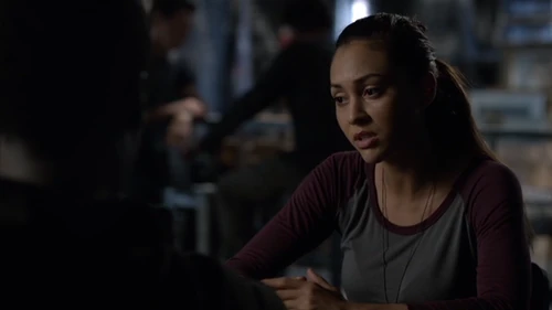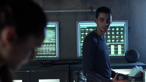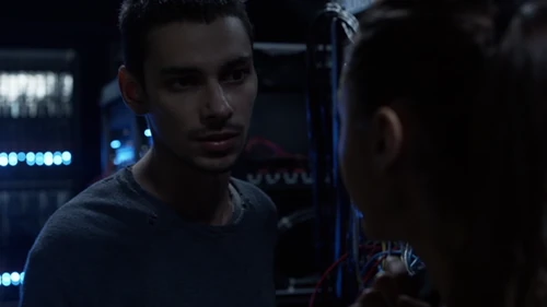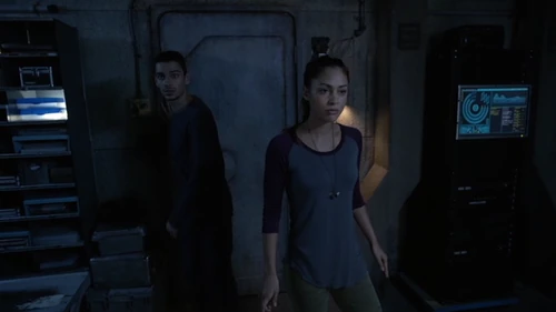 Raven and Jasper are working on getting the access code to Pike's office. Raven lets A.L.I.E check the words Jasper says. They eventually identify the password as "Earth" and head to the office. As they're searching for the chip maker, Jasper points out that the situation they're in right now, which reminds him of when the Grounders marched to the camp to get Finn. Jasper then wants to know if the Chips erase only the painful memories, and leaves the good ones, Raven confirms that. But then she tries to think about her time with Finn after Jasper asks about her necklace and their first kiss. Raven can't remember those things. A.L.I.E is alarmed and tries to get Raven focused on getting the chip maker. Raven, however, grows irritated and realizes that she can't remember Finn at all. Jasper eventually finds the chip maker. A.L.I.E tells Raven to take it, but Raven ignores her, makes Jasper put the chip maker back, and then hastily leaves the office with him.