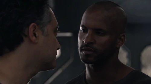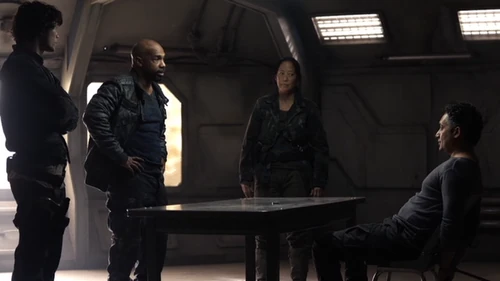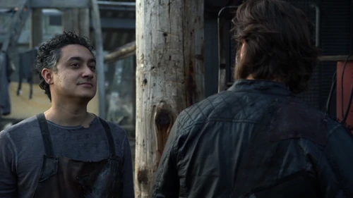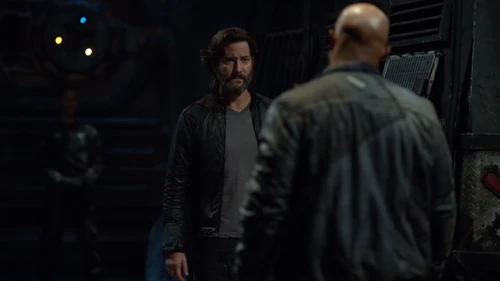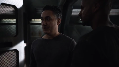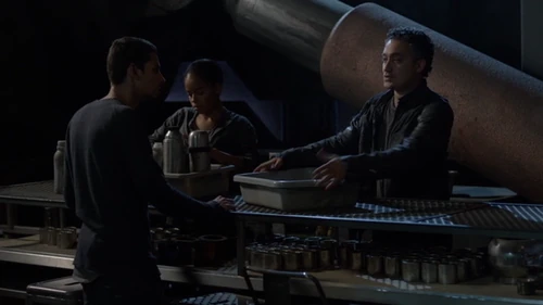 The rationing has started, angering Jasper, since Sinclair denies giving him alcohol now. Meanwhile, Raven and Jaha are sitting in the cafeteria, talking about how to get the second artificial intelligence. Raven says that she and A.L.I.E. had searched the system of the Ark more than once, without any success. Jaha says that they need to get more people to join the City of Light. Raven says that they can't, since Pike confiscated their chip maker after Abby shut them down. Jaha says that they need to get it back. Raven asks how. Jaha then looks over to Jasper, who angrily tells Sinclair off, then leaves. Raven and Jaha watch the scene, then smile at each other.