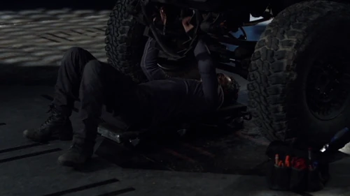 Monty watches as Kane and Sinclair talk. Sinclair later tries to manipulate the Jeep in which Pike's men want to go to the Grounders, to execute their "plan." Before he can do so, Bellamy starts talking to him and his cover blows. Sinclair gets arrested and questioned, but he gives no further information to Pike. Pike then asks Bellamy to hand out his gun, Bellamy hesitantly does. Pike, however, only uses it to destroy the bug. Hannah voices out that, on the Ark, Sinclair would get floated now. Pike tells her that they're not on the Ark and leaves. Sinclair gets locked up with the Grounders and tells Lincoln to get ready for Kane's plan.