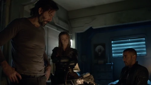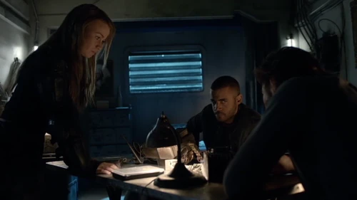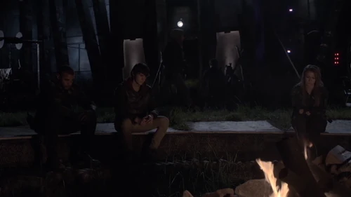 Later, Kane, Harper, and Miller meet again to spy on Pike and his team. Pike tells his team his new plan, which is attacking the Grounders with a small troop in order to make them stand down before blowing them up. Kane, Harper, and Miller are looking at each other in horror, not realizing that Pike found out about the bug and made this plan up.