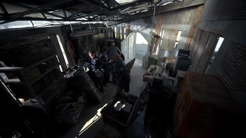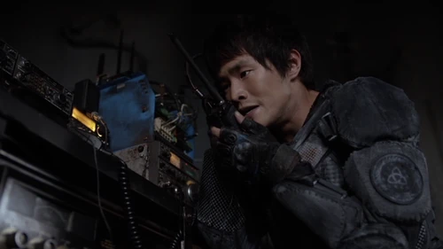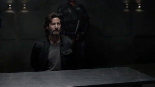 Kane meets up with Pike. Meanwhile, Bellamy gets called to the cell, because Sinclair wants to talk to him. While Sinclair is talking, Lincoln stands up and starts beating up Sinclair. Bellamy goes into the cell, to help Sinclair. Suddenly, the other inmates are attacking Bellamy and a riot starts. As Pike hears about it, he tells the guards in the room to stop it, leaving him alone with Kane. Kane uses the opportunity to knock out Pike and tie him up. As he does so, Harper tells him that the plan is working. Kane asks her if the Gate is open, Monty hears it over the bug in Miller's jacket. He warns Bellamy, so he and the other Guards head to the Gate. Kane is about to leave Arkadia with Pike, when he sees Bellamy and the Guards blocking his way. He abruptly stops the Car and orders Bellamy to get out of the way. Bellamy denies. Kane eventually lets the Guards arrest him.