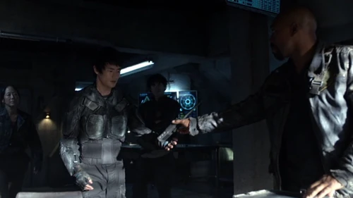 In the evening, A.L.I.E talks to Jaha about the incident with Raven. She explains that a free will and consent is part of her programming, Jaha says he could change that. Kane tries to convince Pike to stop this one last time, but Pike still refuses. He sentences Kane to death, Bellamy looks at Kane, shocked. The Guards bring Kane to the cell and Bellamy voices his doubts about this plan out. Pike doesn't understand and tries talking Bellamy back into his plan, Bellamy hesitantly agrees in the end. Bellamy then leaves Pike's office and talks to Monty, who had been waiting in front of the office the entire time. Monty asks him what they're going to do with Harper and Miller. Before Bellamy can answer, Hannah comes to them and explains how proud of them she is. Hannah asks if they could identify any accomplices. Bellamy and Monty say no. Hannah tells them that it isn't hard to decide what's best for their people. Bellamy tells her he does that every day.