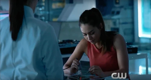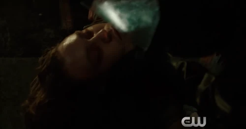 Back at Becca's lab, Sinclair and Raven are working on her freezing solution. Sinclair mentions that her pulse is dangerously low. Raven thanks Sinclair for his help and he tells her that she did it not him. Raven submerges herself into the ice cold water and her heart rate continues to drop. She then puts her hand to the glass containing the water and Sinclair does the same. Raven then blacks out as she flatlines.