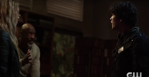 Back in the bunker, Clarke tells Jaha that their decision to lock the bunker's door is wrong. Jaha then asks if it's worth it to open the hatch. Abby says no but also says that she's not able to live with herself for it. Jaha then tells Clarke that she's stronger than her mother and that they'll figure everything out. He also mentions that they need someone to guard the door and Clarke says that she knows the right person.